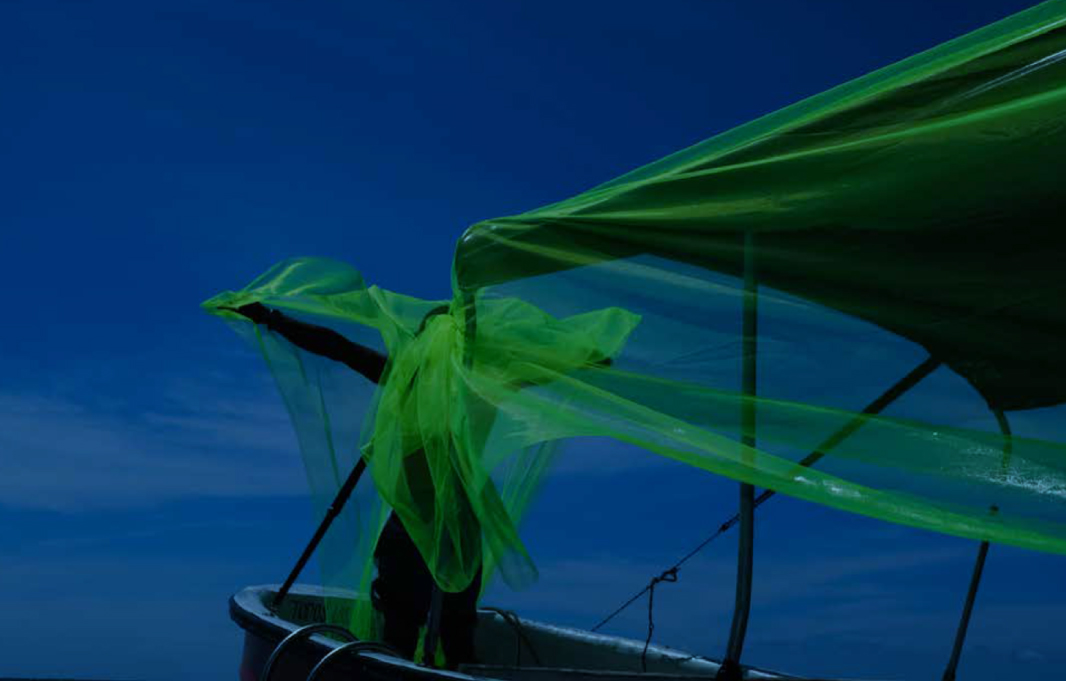 ‘El pez muere por la boca’, realizado entre 2016 y 2023, es un proyecto participativo y de intervención en donde la comunidad hace parte de la creación de las imágenes. Los contrastes entre las tradiciones (estados pacíficos o de paz) y la presión armada (grupos paramilitares y de narcotráfico) son expresados en diferentes acciones, paisajes, cuerpos y objetos. La cotidianidad se entremezcla con la construcción de las escenas. Aquí, el acto performático se confunde con el vaivén de la realidad, como un canto a ese límite indefinido entre mar y tierra.