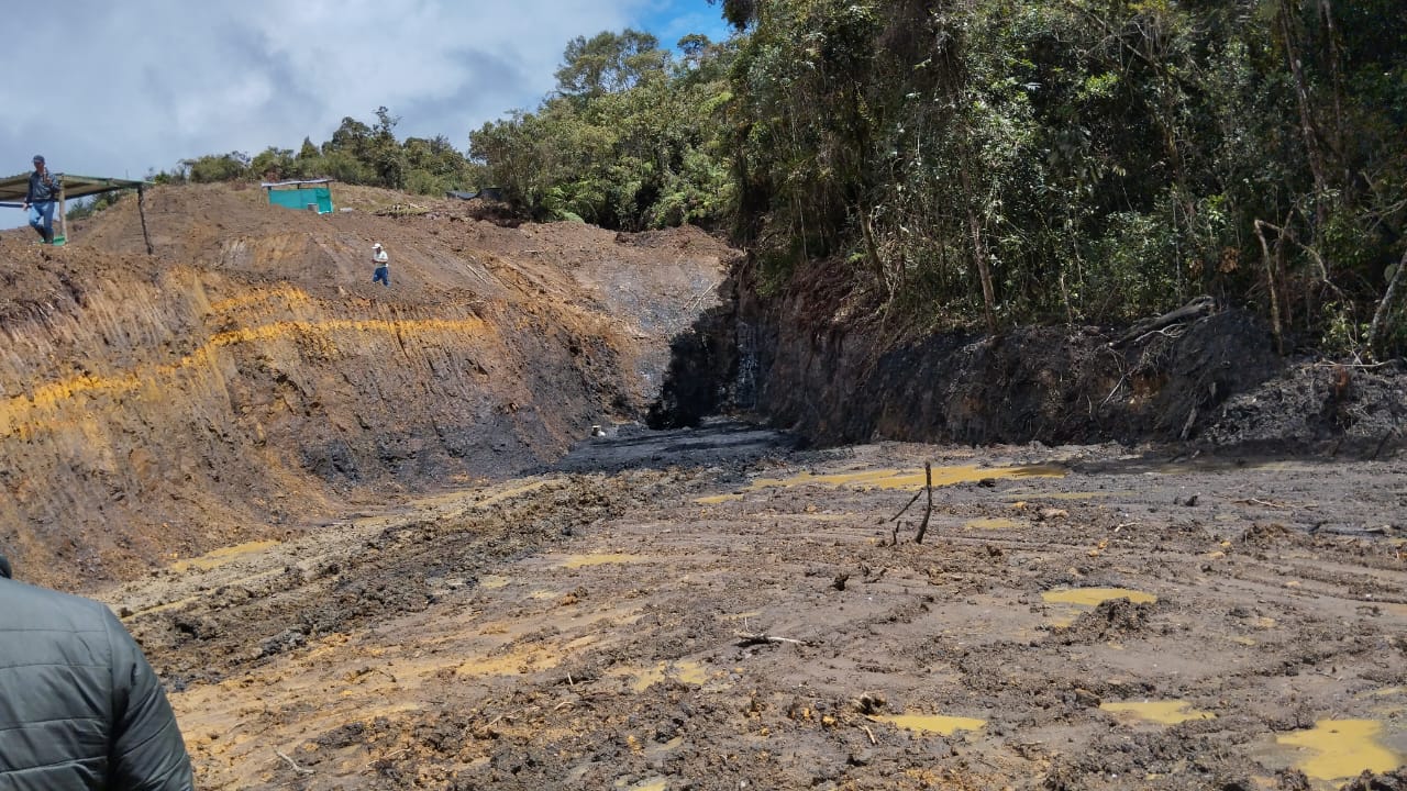 La minera taló la cresta de la montaña y destruyó dos nacimientos de agua removiendo grandes cantidades de tierra